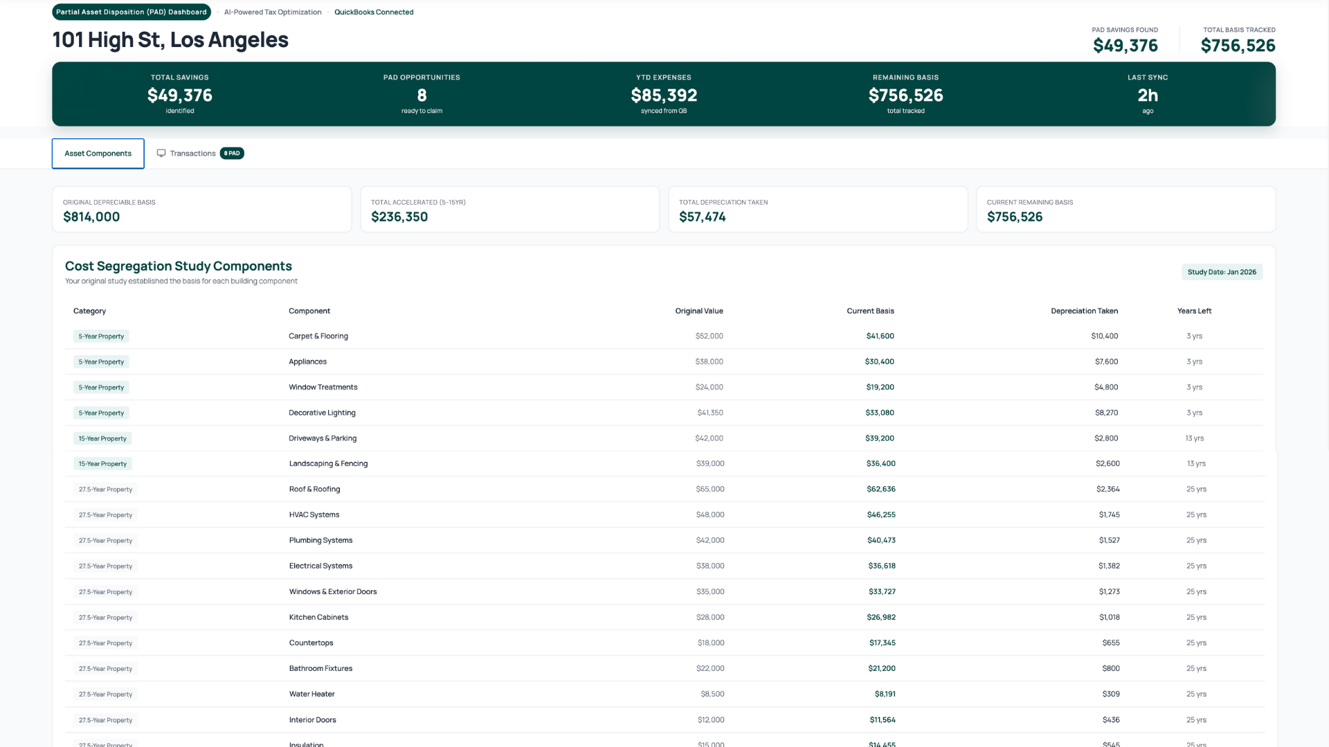 Get your IRS-ready report with fixed asset schedules. Share with your CPA and claim your accelerated depreciation.
